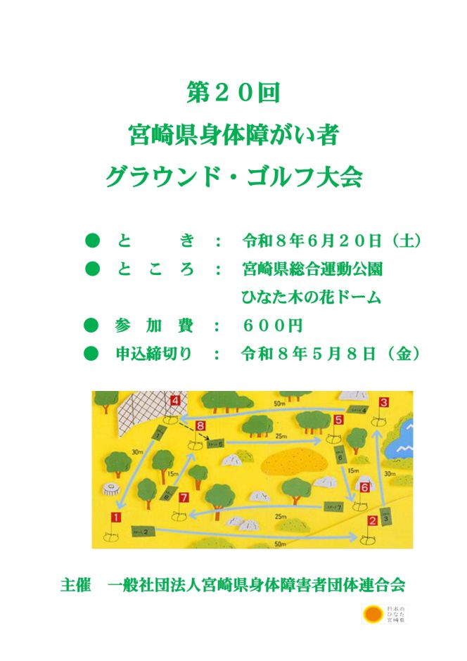 今年も会員の皆様の健康増進と親睦を目的として、恒例の宮崎県身体障がい者グラウンド・ゴルフ大会を開催します。