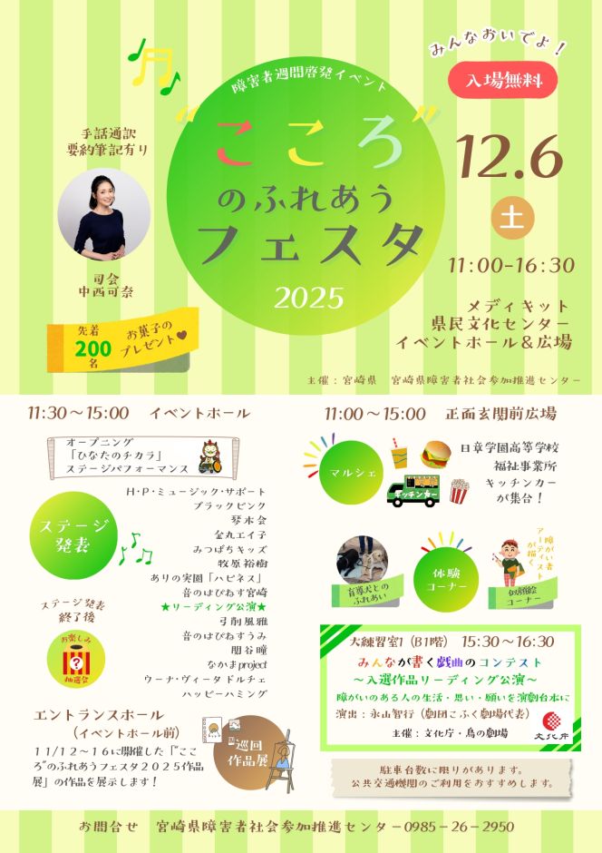 障害者週間の啓発のため、今年も「"こころ”のふれあうフェスタ」を開催します。